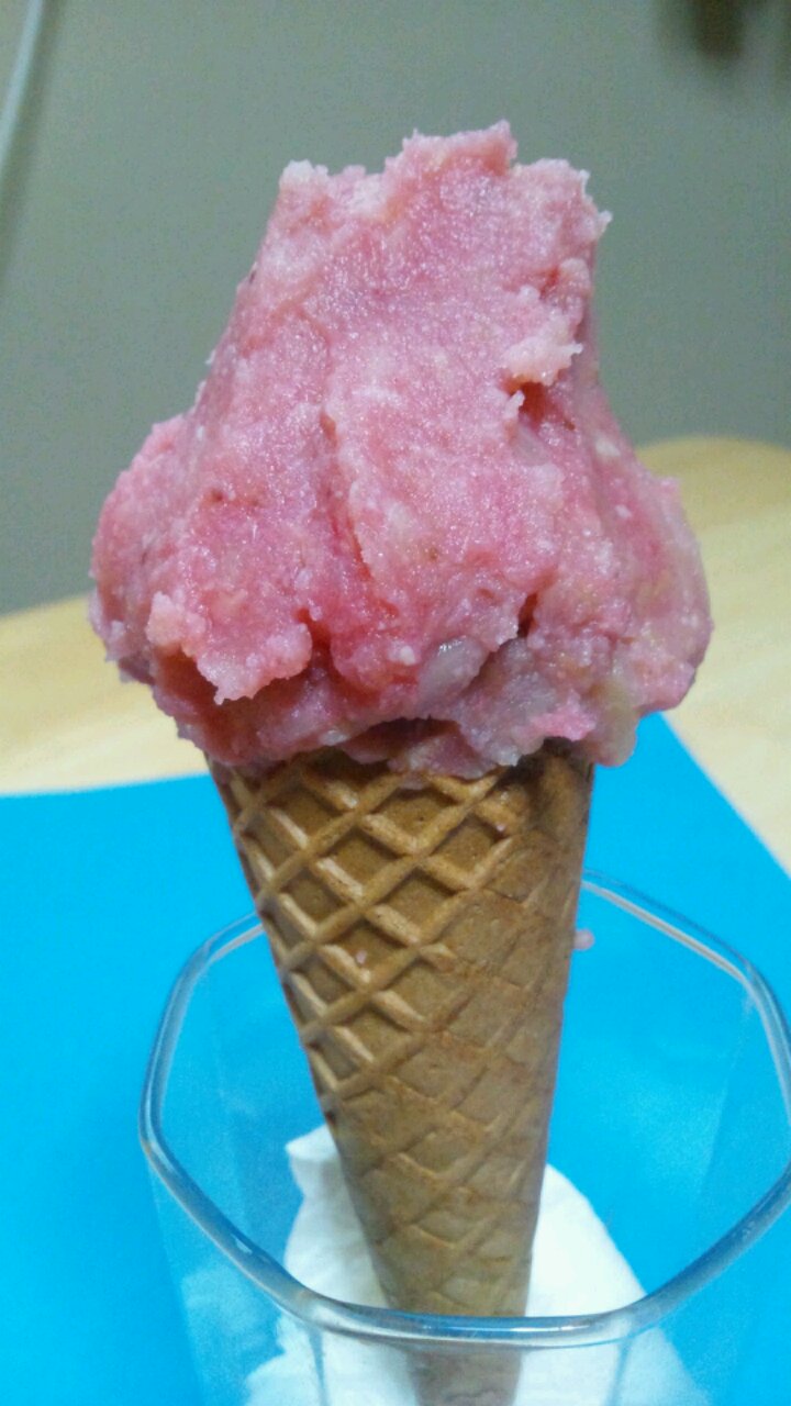 市販のストロベリーアイスのピンクが、イチゴではなく食紅だという事実を再確認。